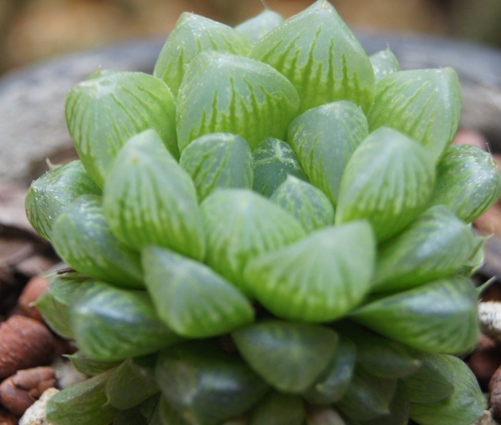 玉露原产南非,喜凉爽的半荫环境,主要生长期在春、秋季节,为多肉植物中的“中间型”品种。耐干旱,不耐寒,忌高温潮湿和烈日暴晒,怕荫蔽,也怕土壤积