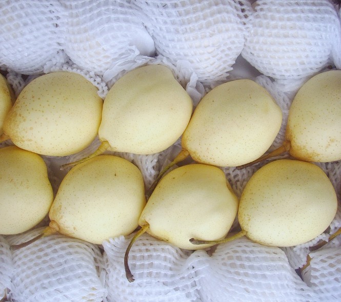 鸭梨:单果重125克-260克,较大可达530克,果品细薄而光滑,有腊质,采收时绿黄色,贮藏后变为白色,果点黄褐色,圆形,近梗洼处大而稀;果肉白色,质细而脆,石细胞少,果汁多,味甜微酸。 成熟时期:8月下旬、9月上旬成熟。